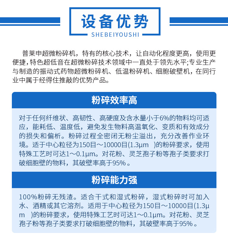 ◆適合植物花粉孢子破壁粉碎、破壁率能達(dá)95%。
