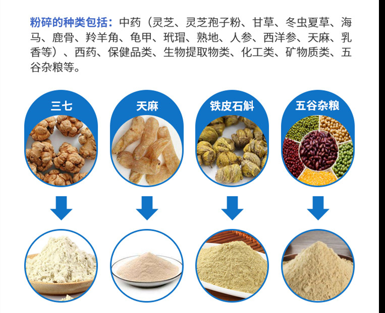 4、三頭多級粉碎,不僅粉碎效率高,同時可以粉碎得比較細(xì),可以粉碎達(dá)180目,可以讓中藥得到更好的吸收。